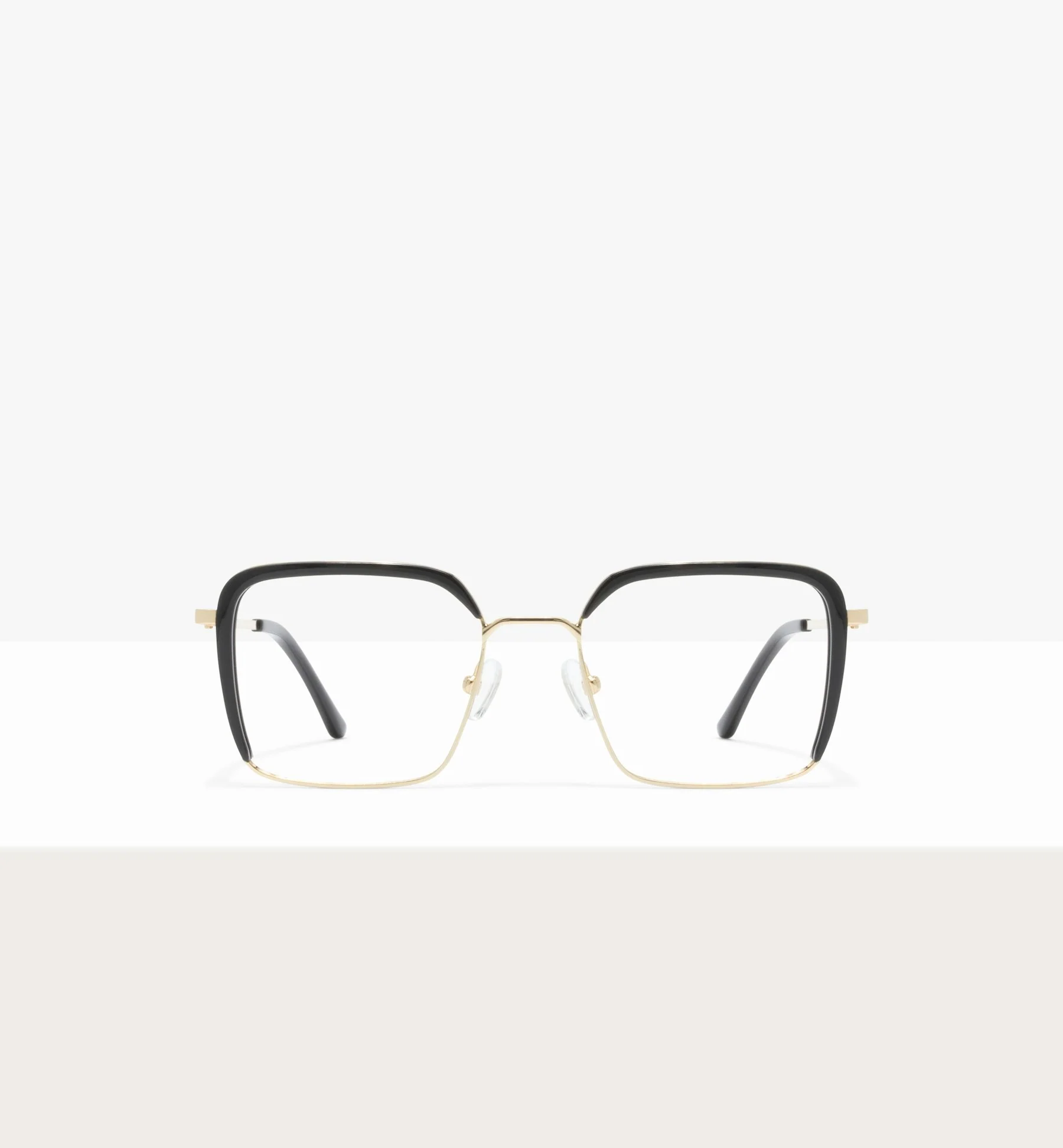 A uniquely designed square frame that blends metal and acetate. It is light, comfortable equipped with adjustable nose pads, and can be fitted with blue light protection lenses. Try it online with our virtual tool!