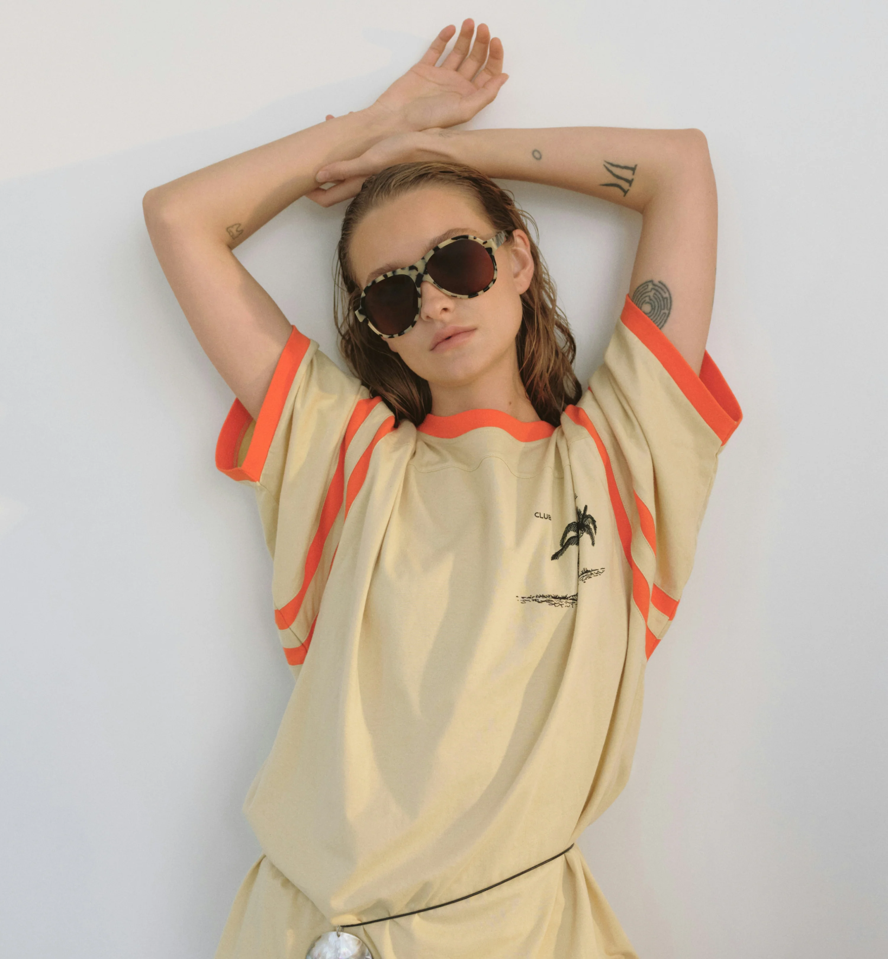 With its soft edges and dramatic shield lenses, this acetate frame radiates effortless elegance. More than an accessory, this look is a daring statement.